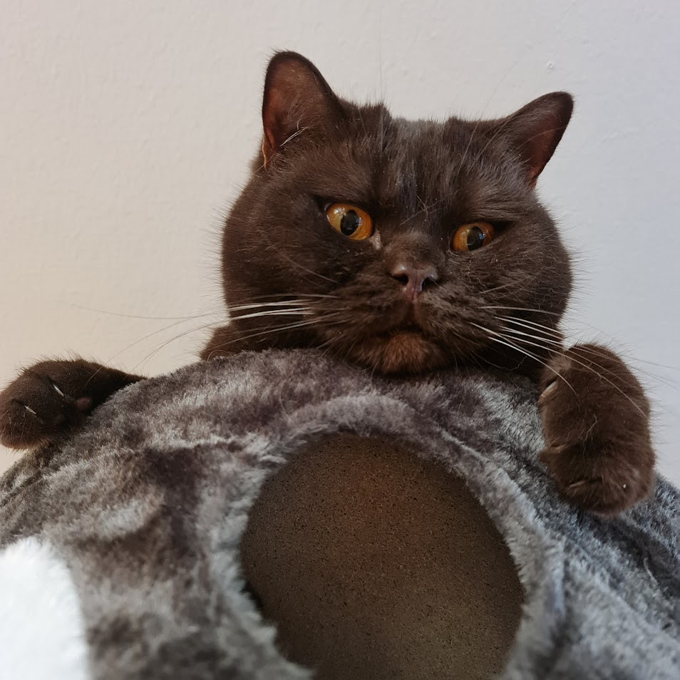 Personality: This 'grumpy cat' is actually the sociable one. He's ballsy, he's not afraid to meet new people and he breaks the rules just because he can. Spitefully so, even; my mom can leave the room and he will get on the table because he knows I'm the one that doesn't yell at him for it.